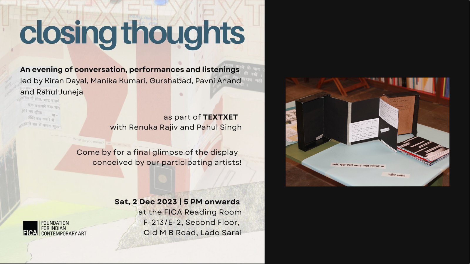 9 November- 2 December, 2023. Foundation of Indian Contemporary Art (FICA).Photobook and Lecture Performance of "Meeting Kalki".