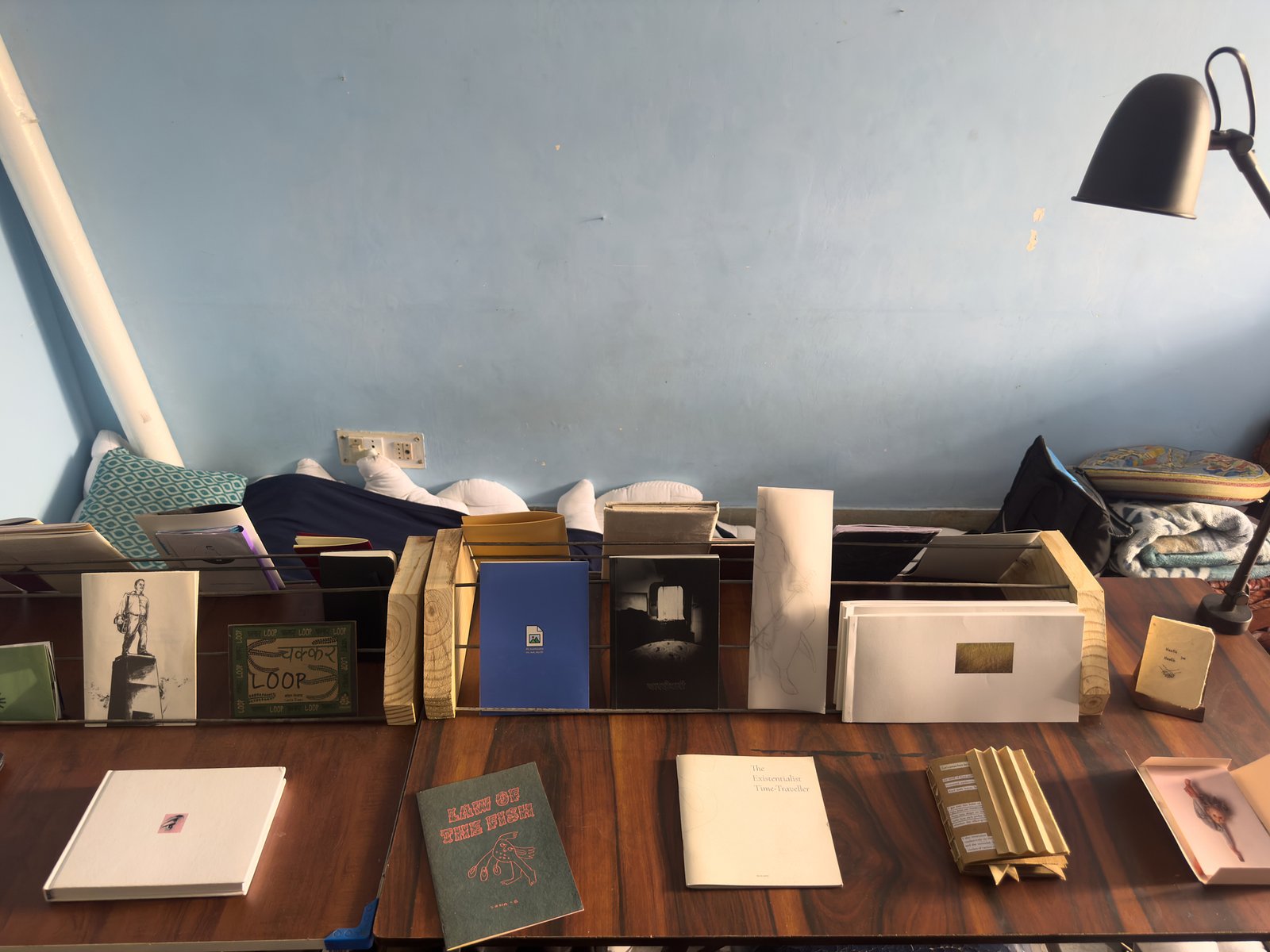 Book Show-I, curated by Priyesh Gothwal includes more than 80 Artists' books- comics, zines, and other publications in a mobile, itinerant reading space, inviting new permutations and combinations with each encounter. The show was initially displayed at Studio Jangpura, New Delhi, and has since travelled to Foundation of Indian Contemporary Art (FICA), New Delhi and Shiv Nadar Institute of Eminence, Uttar Pradesh.