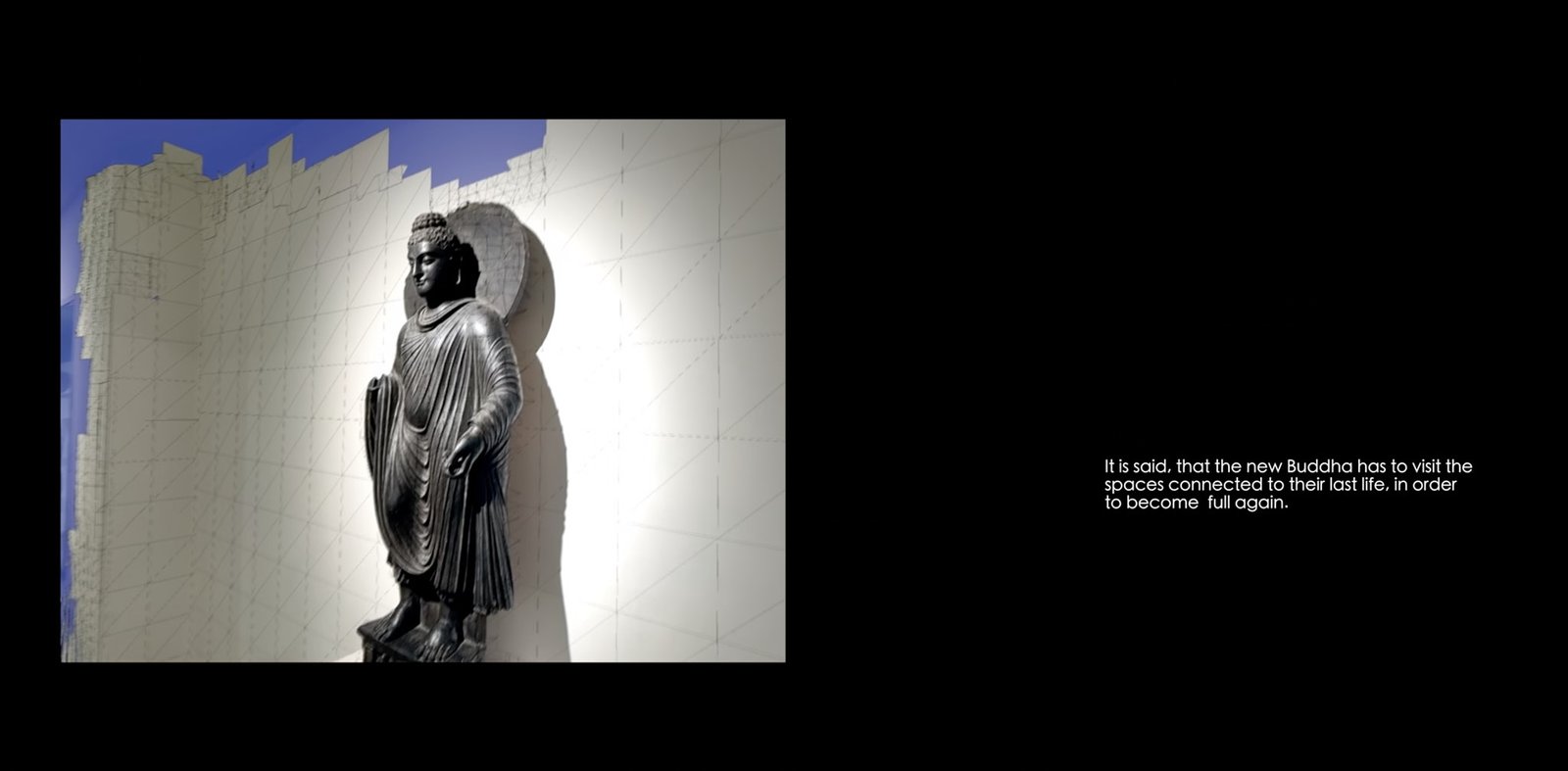 The work takes off from the sculpture of Gandhara Buddha placed in the National museum in New Delhi, a site for historical and political transformation in the last decade.