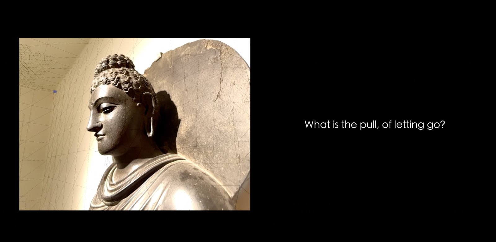 Epistemic Geometries (2025) is a dual channel video unearthing how structures of knowledge, history and enlightenment are organised and materialised. The figure of the Buddha goes through a geometric dissection via a depth scanner, prompting the question- are the symbols of enlightenment, or nirvana, capable of escaping these cyclical structures themselves? What animates the geometries of knowledge?